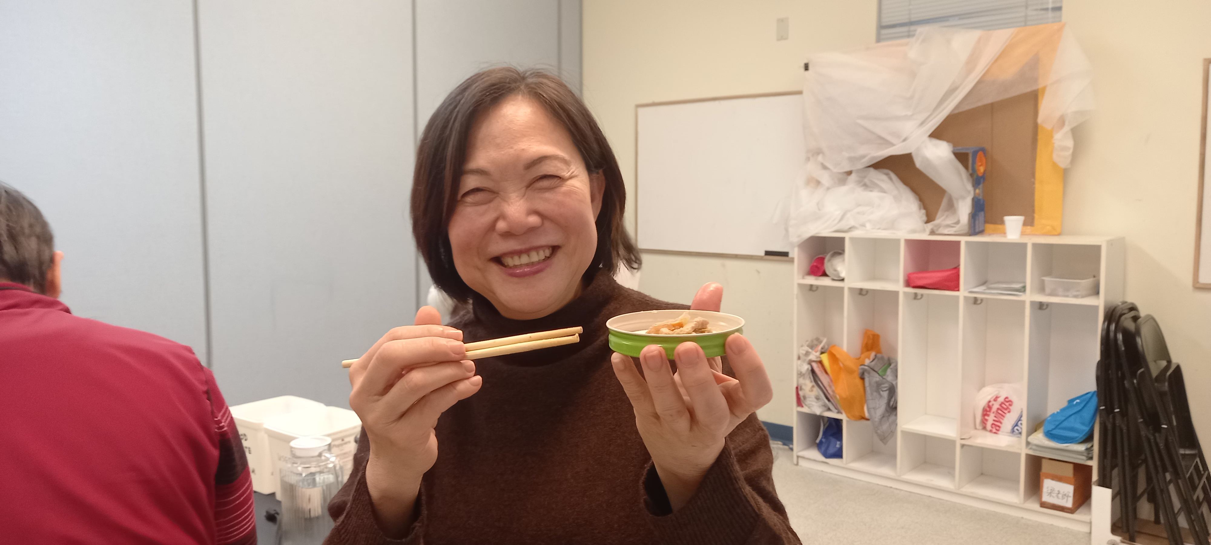 Someone who heeds our request to bring her own tableware. 聽從我們要求 自備餐具的 一位朋友.